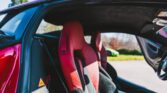 The cabin is trimmed in a combination of red and black leather and Alcantara complete with contrast stitching and carbon-fibre inlays.