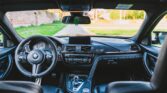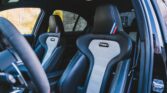 This example is finished in Black Sapphire Metallic, and the cabin is trimmed in a combination of black and light grey leather and synthetic suede complete with contrast stitching, perforated seat detailing, and M tri-colour accents on the front headrests.